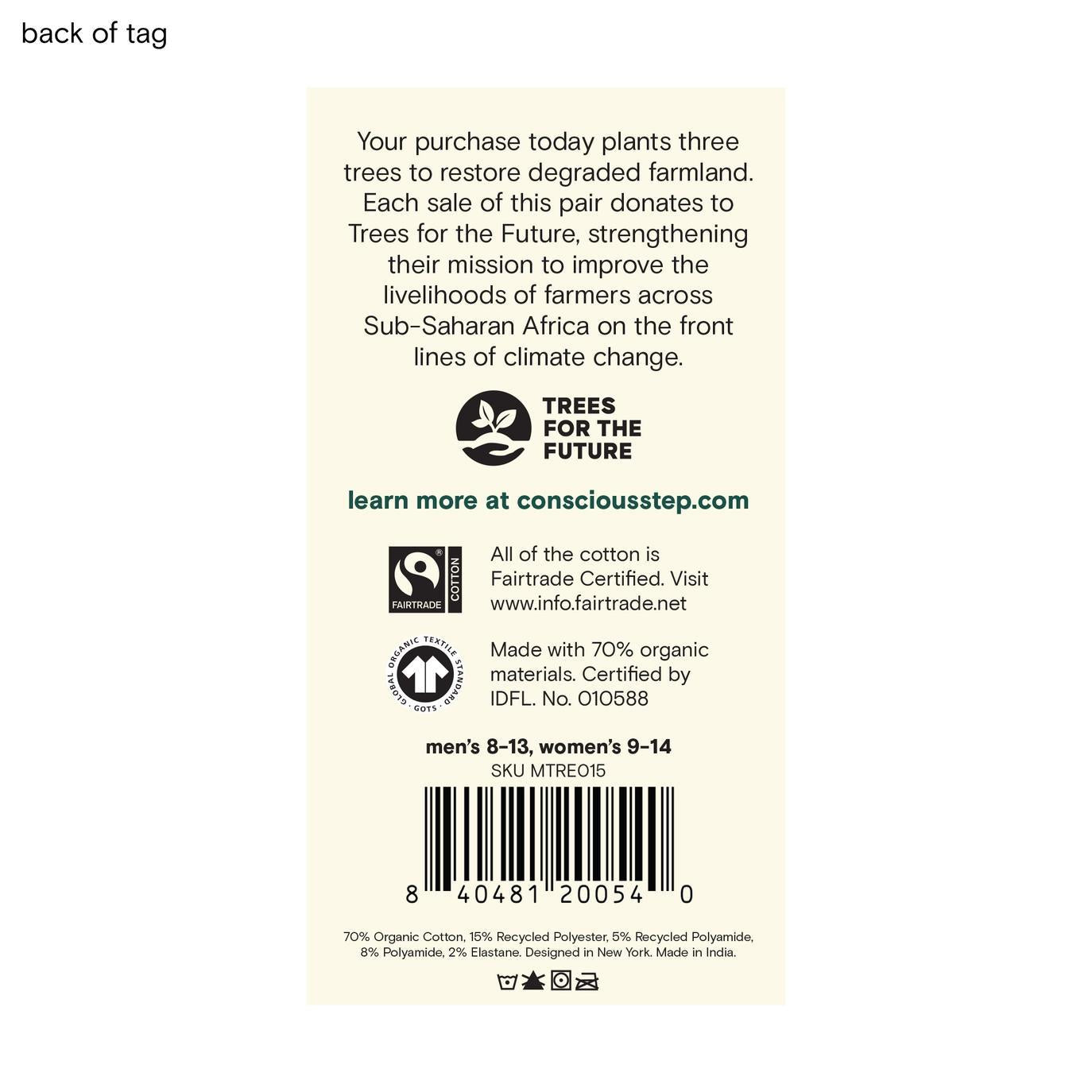 Conscious Step makes socks that change the world! Every pair donates to a partner non-profit and every purchase makes an impact. Conscious Step is proud to be Organic (GOTS), Fair Trade and Vegan Certified. The socks are made from 168 needle count cotton and feature terry padding for extra comfort.