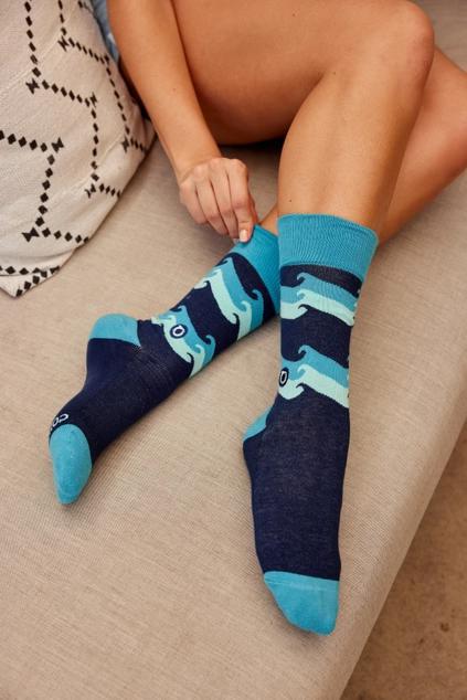 Show off your love for the ocean with these playful rolling waves socks! Featuring vibrant blue waves and a subtle Oceana logo, each pair helps support healthy oceans and protect marine life. Whether you're near the shore or dreaming of the beach, these cozy socks let you carry a splash of ocean spirit everywhere you go.