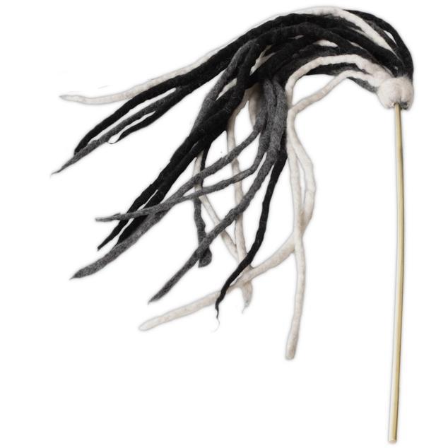 Crafted from durable wool and mounted on an 18" bamboo stick, this multi-strand teaser features nine 12" strings designed for extended play. The natural lanolin in our Himalayan and New Zealand wool blend gently entices cats, offering a safe alternative to catnip. Its textured fibers help clean teeth and claws as your cat enjoys playtime. Colored with non-toxic dyes and free from synthetic microfibers, this toy combines health benefits with lasting fun your cat will love.