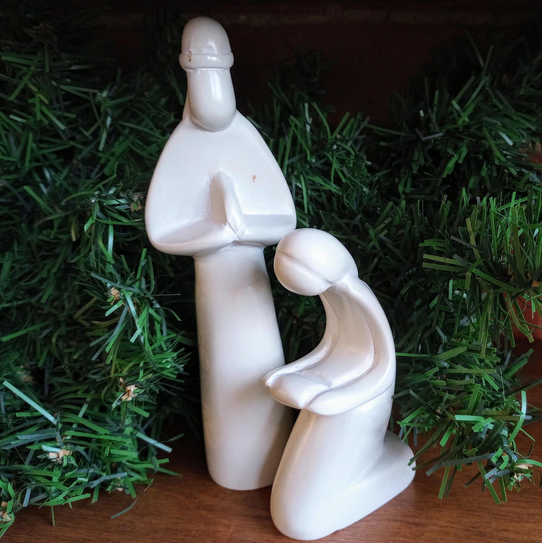 If you are looking for a simple nativity to place in your home during Christmas time, this is a great option! Two pieces gracefully depict the Holy Family as baby Jesus is welcomed into the world.