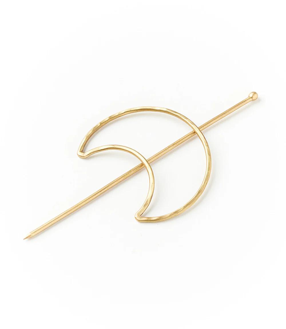 Crescent Moon Hair Pin with Stick Gold