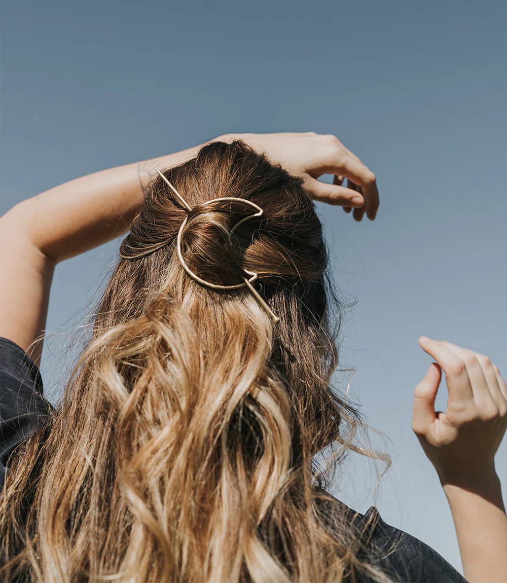 Crescent Moon Hair Pin with Stick
