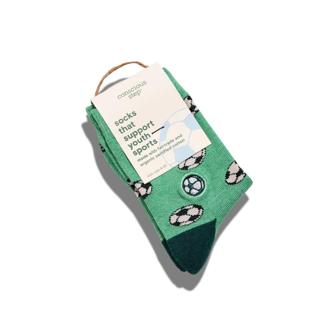 Kids Socks that Support Youth Sports (Green Soccer Balls)