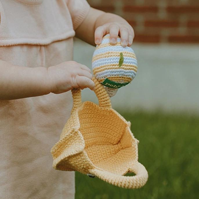Elevate Easter festivities with our Handmade Crochet Yellow Chick Easter Basket, a playful and eco-friendly option. This charming basket boasts a bright yellow chick face with intricate details, ideal for Easter egg hunts, gifts, or sprightly decor. Each basket has two crocheted eggs, perfect for endless play. Ethically made by fair-trade artisans using sustainable materials, it seamlessly blends functionality and whimsy.