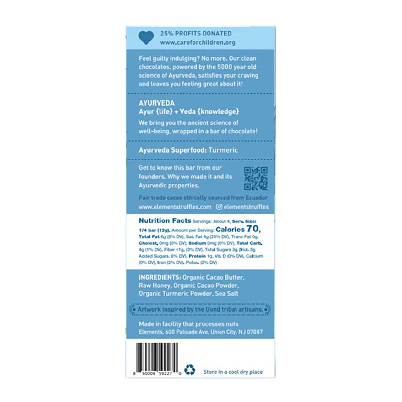 Indulge in a guilt-free gourmet experience with this small-batch artisan chocolate bar. Crafted with rich dark chocolate, savory sea salt from Cervia, Italy, and a hint of earthy turmeric from India, each bite delivers a bold, balanced flavor that's both luxurious and nourishing.