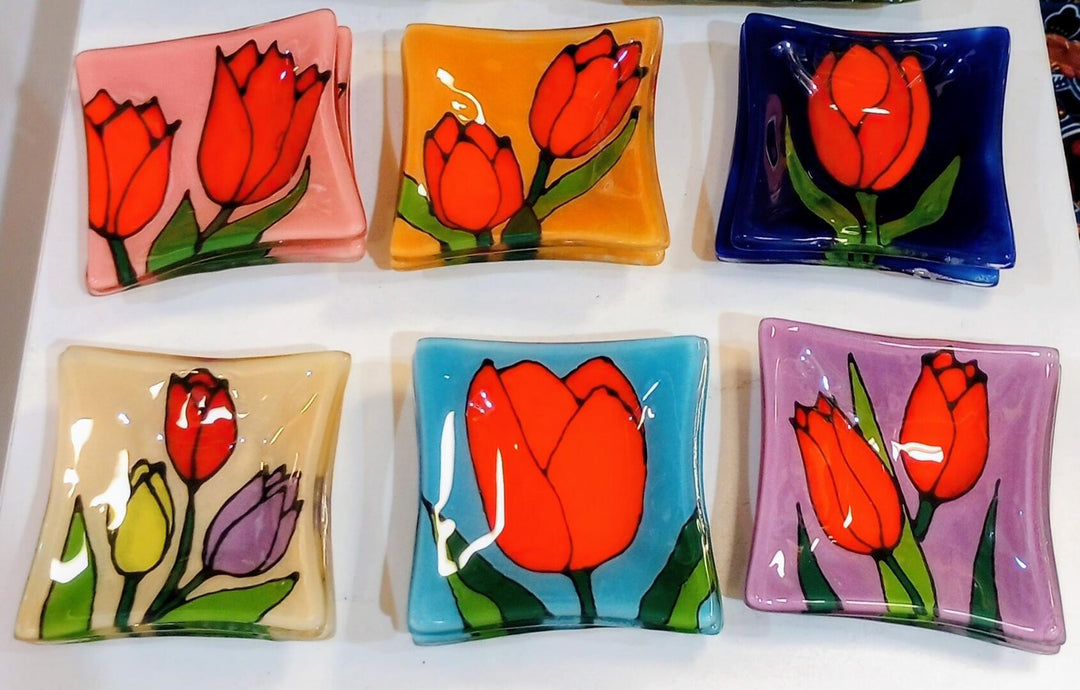 Glass Dish Tulips