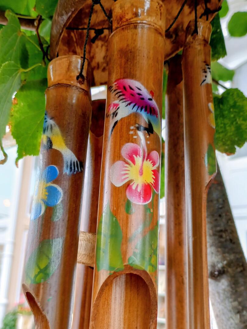 Natural bamboo tubes produce soft, calming tones with every breeze, while vibrant hand-painted hummingbird and floral designs add a touch of color and visual delight. Ethically made under fair trade practices, each piece supports skilled artisans and helps preserve traditional craftsmanship. Perfect for gardens, patios, balconies, or porches, this wind chime combines eco-friendly materials, artisanal detail, and soothing sounds for a beautiful and meaningful outdoor accent.